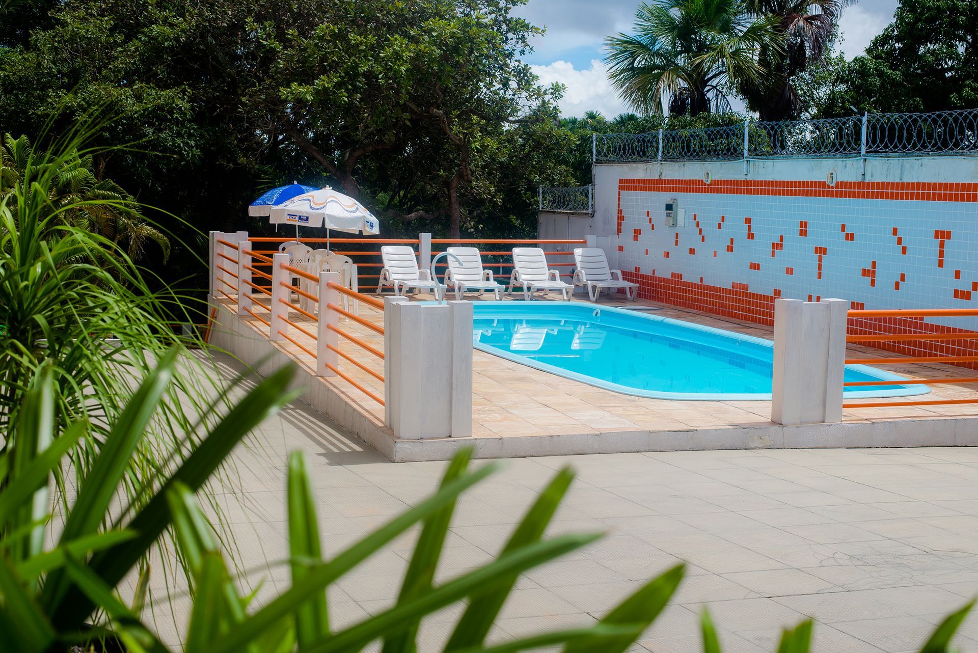 Projetada para oferecer conforto e conveniência a área da piscina é cercada por espreguiçadeiras confortáveis e sombreiros, proporcionando um ambiente relaxante para os hóspedes que desejam desfrutar do sol e da água.